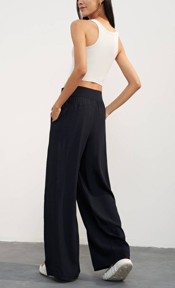 Coole Sonnenschutz-Fitnesshose für Damen, Sommer, dünne, hoch taillierte, weit geschnittene, gerade Hose, lockere, schnell trocknende Yoga-Hose
