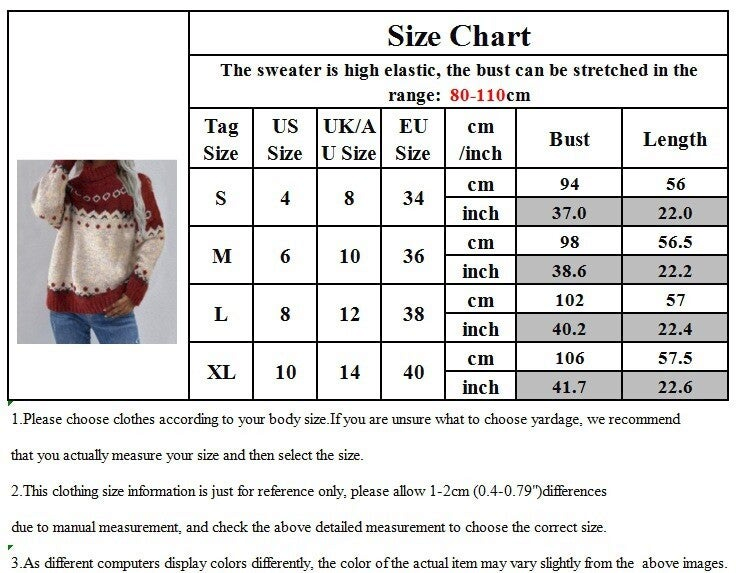 Der Weihnachts-Damen Rollkragenpullover ist ein stilvolles und gemütliches Kleidungsstück, das perfekt für die festliche Jahreszeit geeignet ist. Hergestellt aus hochwertigem Polyester mit einem Anteil von 90%, bietet dieser Jacquard-Strickpullover nicht nur eine angenehme Haptik, sondern auch eine hervorragende Wärmeisolierung. Der Pullover verfügt über ein verdicktes Revers, das zusätzlichen Komfort und einen eleganten Look verleiht. Mit einer normalen Kleidungslänge von 50 cm bis 65 cm passt er sich ideal an verschiedene Körpergrößen an und sorgt für eine schmeichelhafte Silhouette. Erhältlich in den festlichen Farben Rot und Grün, ist dieser Pullover ein echter Hingucker und lässt sich vielseitig kombinieren. Die Größen S, M, L und XL gewährleisten, dass jede Frau das passende Modell findet, während das Gewicht von 500 g in Größe S und 530 g in Größe XL für ein angenehmes Tragegefühl sorgt.