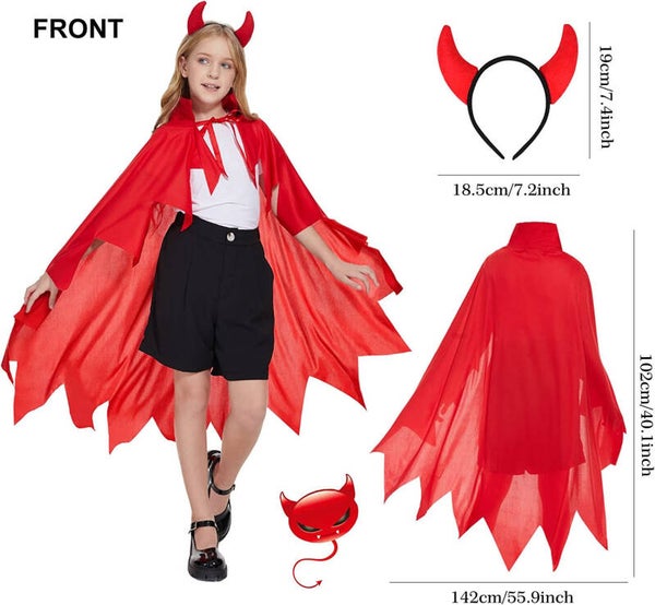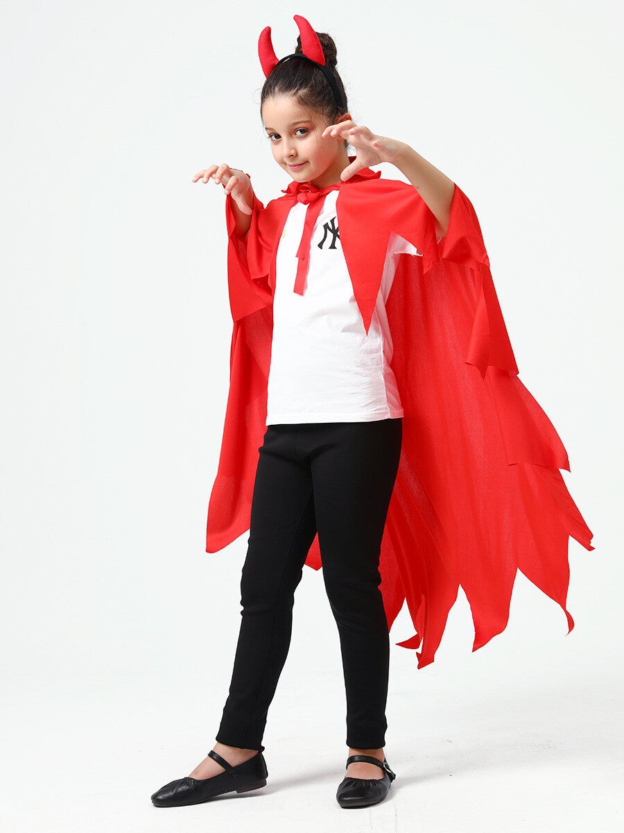 Roter Teufelshorn-Umhang, Kinder, Unisex