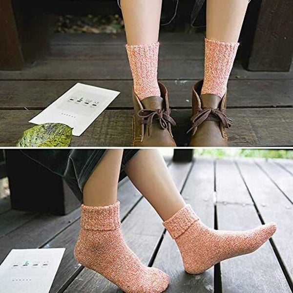 Damen Wollsocken, 5 Paar Retro Stricksocken