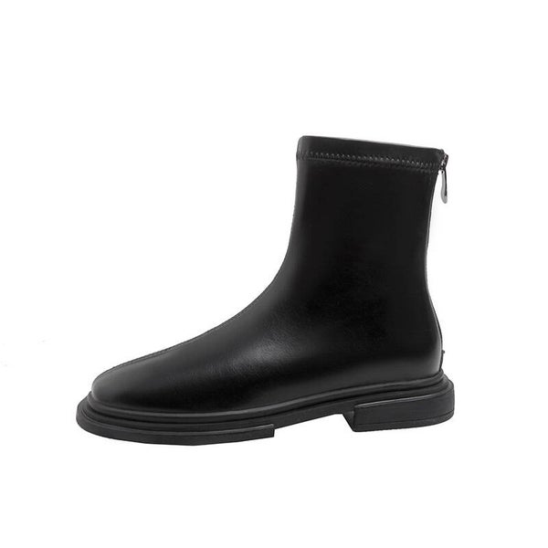 Chelsea-Stiefel mit dickem Absatz, im britischen Stil, weiches Leder, weiche Sohle, kleine kurze Stiefel aus echtem Leder für Damen, Herbst und Winter