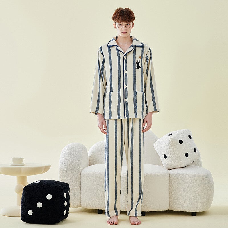 Flanell-Pyjama für Damen und Herren, Panda, Katze, Herbst und Winter, Samt