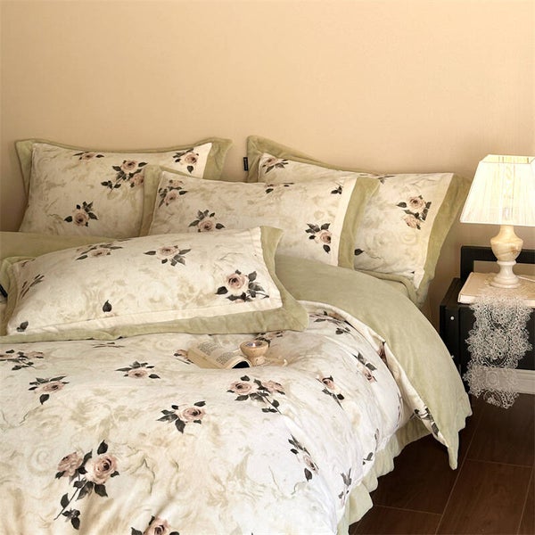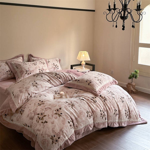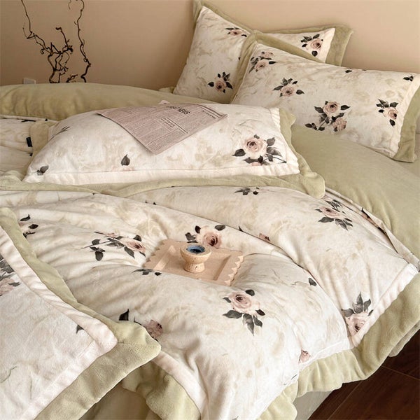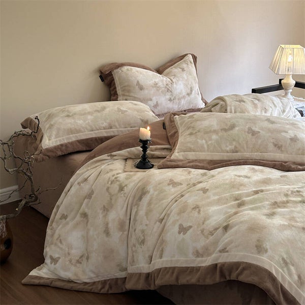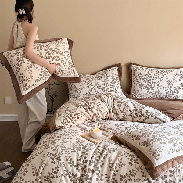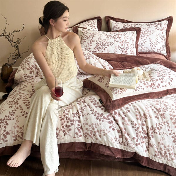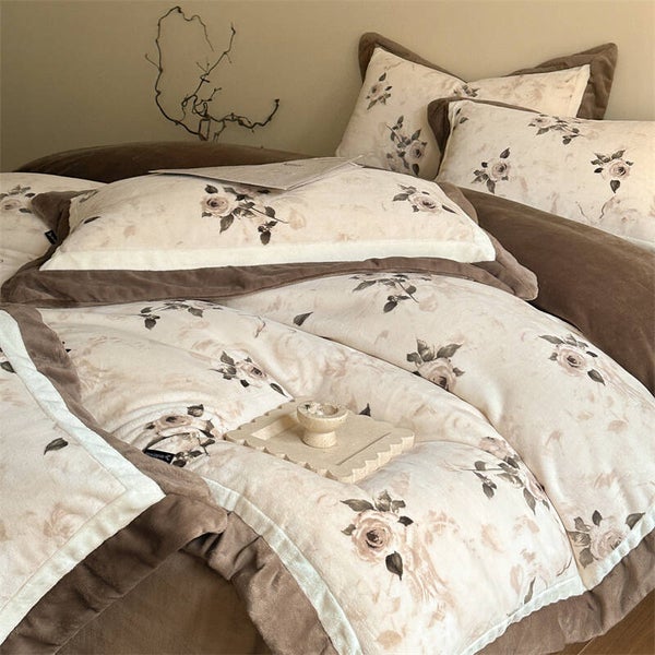 Herbst und Winter, Mousse Samt, vierteiliges Set, warmer französischer Samt-Bettbezug, Bettwäsche