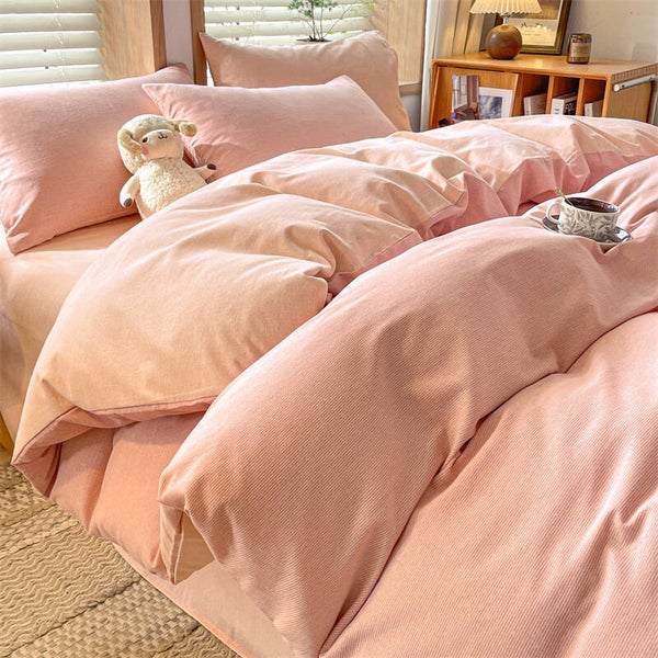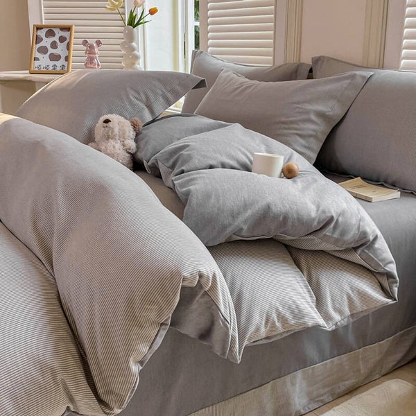 Herbst und Winter Bettwäsche, gebürstetes vierteiliges Set aus reiner Baumwolle, gestreifte Bettwäsche aus reiner Baumwolle, Bettlaken, Kissen- und Bettbezug