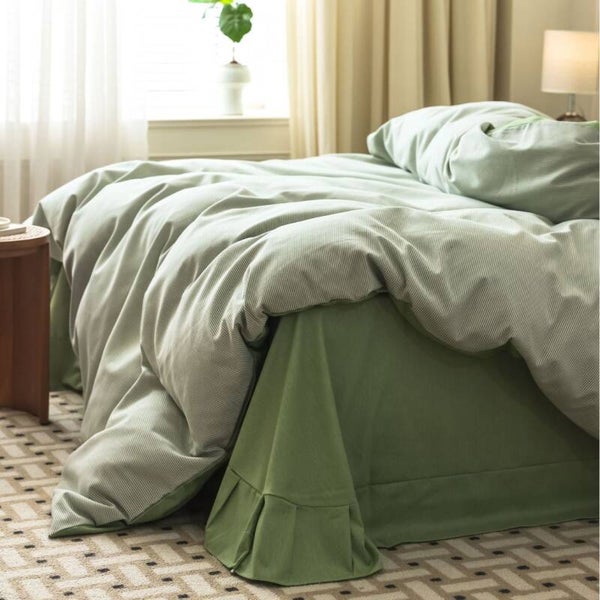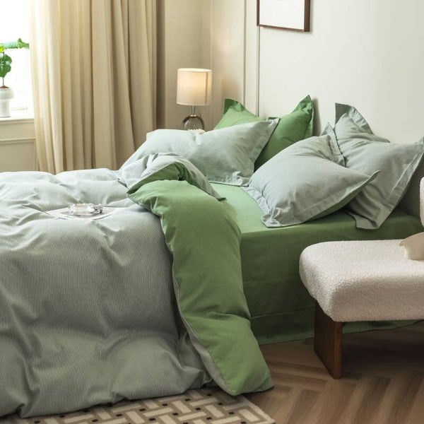 Entdecken Sie die exquisite Bettwäsche aus reiner Baumwolle, die speziell für die kühleren Herbst- und Wintermonate entworfen wurde. Dieses vierteilige Set umfasst ein Bettlaken, einen Kissenbezug und einen Bettbezug, die alle aus hochwertigem, gebürstetem Twill gefertigt sind. Die gestreifte Optik verleiht Ihrem Schlafzimmer eine moderne und zugleich gemütliche Atmosphäre. Erhältlich in ansprechenden Farben wie Bonnie-Grau, Urban Coffee, Urban Green, Bonnie-Coffee, Bonnie-Blau Grau, Bonnie-Grün und einfachem Rose, bietet dieses Set eine stilvolle Ergänzung für jede Einrichtung. Die verschiedenen Größenoptionen, darunter 1,5m, 1,8m und 2,0m Bettlaken sowie Spannbettlaken, garantieren eine perfekte Passform für Ihre Matratze und sorgen für einen erholsamen Schlaf. Die Verwendung von reiner Baumwolle sorgt nicht nur für ein angenehmes Hautgefühl, sondern auch für eine hohe Atmungsaktivität und Langlebigkeit der Bettwäsche. Die gebürstete Oberfläche bietet zusätzlichen Komfort und Wärme, ideal für die kalten Monate. Jedes Set ist sorgfältig verarbeitet, um eine einfache Pflege und Reinigung zu gewährleisten, sodass Sie mehr Zeit mit Entspannung und weniger mit der Wäsche verbringen können. Gönnen Sie sich und Ihren Lieben die luxuriöse Erfahrung dieser stilvollen und funktionalen Bettwäsche, die sowohl ästhetisch ansprechend als auch praktisch ist.
