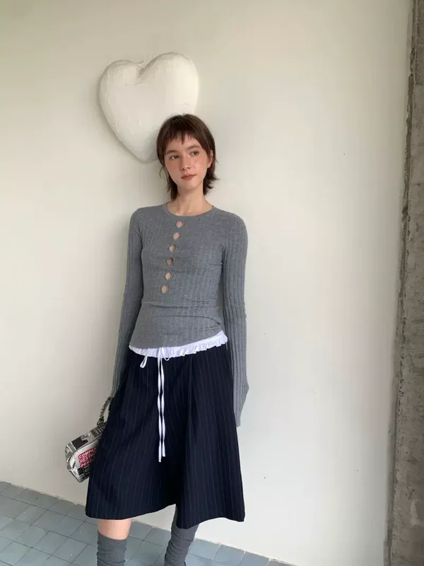 Dieser Damen Pullover im Slim Fit überzeugt durch sein modernes Hohldesign und die hochwertige Verarbeitung aus Acrylfaser, die sowohl für Komfort als auch für Langlebigkeit sorgt. Der Pullover ist ideal für die Frühlingsmonate und lässt sich vielseitig kombinieren. Mit einem klassischen Rundhalsausschnitt und regulären Ärmeln bietet er eine schmeichelhafte Silhouette, die die feminine Figur betont. Die Knopfleiste verleiht dem Design eine besondere Note und ermöglicht eine individuelle Anpassung. Mit einer normalen Kleidungslänge von 50 cm bis 65 cm ist dieser Pullover perfekt für den Alltag geeignet und kann sowohl lässig als auch elegant gestylt werden. Erhältlich in einer Vielzahl von ansprechenden Farben wie Schwarz, Hellgrün, Lila, Hellgelb, Rosa, Blumengrau, Off-Weiß und Rot, bietet dieser Pullover für jede Dame die Möglichkeit, ihren persönlichen Stil auszudrücken. Die Größen S und M gewährleisten eine optimale Passform für unterschiedliche Körperformen. Ob für einen entspannten Tag im Freien oder ein Treffen mit Freunden, dieser Pullover ist die perfekte Wahl, um sowohl modisch als auch bequem gekleidet zu sein.