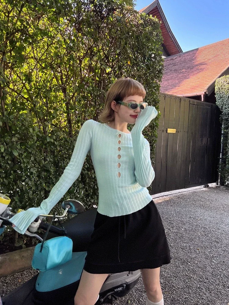 Hohldesign, gestricktes Pullover mit Bottoming, Frühling, slim fit Pullover für Damen