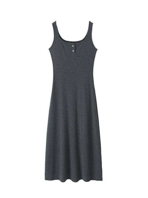 Quadratischer Kragen, Knöpfe, Taille, gestrickter Hosenträger, langer Rock, große Größe, französisches langes Westenkleid