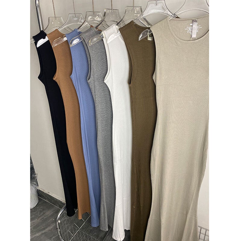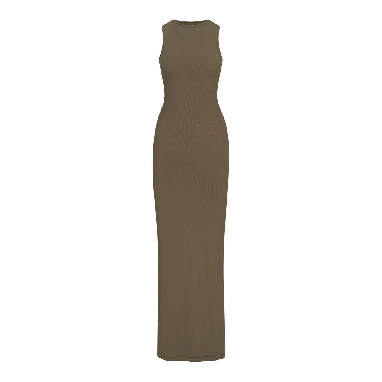 Damen Kleid im Kim Kadashian Style, Ärmelloses Westenkleid, Kardashian Skims im gleichen Stil, französischer hüftbedeckender Hosenträgerrock, langer Rock