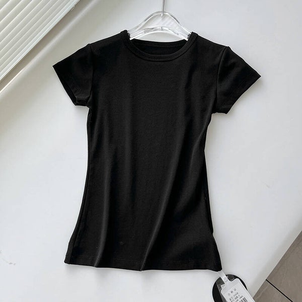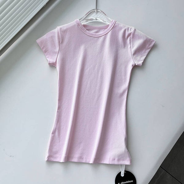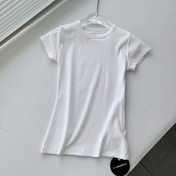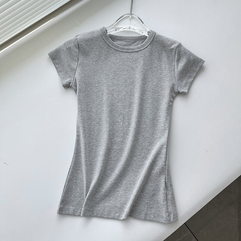 Basic-Stil, vielseitig, schmal geschnittenes Rundhals-Oberteil, Frontschulter-Sport-Kurzarm-T-Shirt für Damen