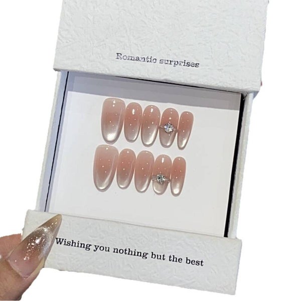 Entdecken Sie die zauberhaften handgemachten Aufsetznägel im Katzenaugen-Stil, veredelt mit funkelnden Kunstdiamanten, die Ihrem Look einen Hauch von Luxus verleihen. Diese hochwertigen Nägel bestehen aus eis-transparentem, reinem Wunsch-Rouge und bieten eine seitliche Beleuchtung, die das faszinierende Katzenauge-Design perfekt zur Geltung bringt. Ideal für die festliche Weihnachtszeit oder für jeden Anlass, an dem Sie strahlen möchten, sind diese Nägel in verschiedenen Formen erhältlich: kleine, mittlere und lange ovale Varianten. Wählen Sie aus den Größen XS, S, M und L, um die perfekte Passform für Ihre Nägel zu finden. Mit einem frischen, süßen und ultradünnen Design, das spurlos aufgetragen werden kann, sind diese Nägel nicht nur ein Blickfang, sondern auch ein Ausdruck Ihrer Persönlichkeit – ob mit Cartoon-Motiven, Blumen, Herzen, Schleifen, Sternenhimmel oder Schmetterlingen. Gönnen Sie sich diesen leichten Luxusstil und lassen Sie Ihre Nägel zum Highlight Ihres Looks werden!