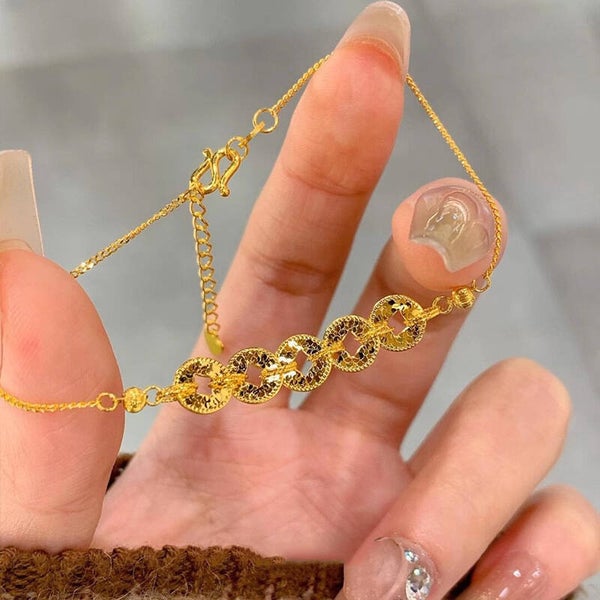 Entdecken Sie das faszinierende Broken Money Duoduo-Armband, ein stilvolles Accessoire, das Eleganz und Glück vereint. Dieses Damenarmband besticht durch seine einzigartigen, gebrochenen Goldmünzen-Designs, die nicht nur einen Hauch von Luxus verleihen, sondern auch symbolisch für Wohlstand und Glück stehen. Hergestellt aus hochwertigem Kupfer und mit einer sorgfältigen Galvanisierung behandelt, bietet es nicht nur eine ansprechende Optik, sondern auch Langlebigkeit und Widerstandsfähigkeit. Wählen Sie zwischen der klassischen Variante oder der Doppelkette, um Ihren persönlichen Stil zu unterstreichen. Dieses Glücksarmband ist das perfekte Geschenk für sich selbst oder für besondere Menschen in Ihrem Leben und wird sicherlich zum Blickfang bei jedem Anlass. Verleihen Sie Ihrem Outfit das gewisse Etwas und lassen Sie sich von der positiven Energie dieses einzigartigen Schmuckstücks inspirieren!