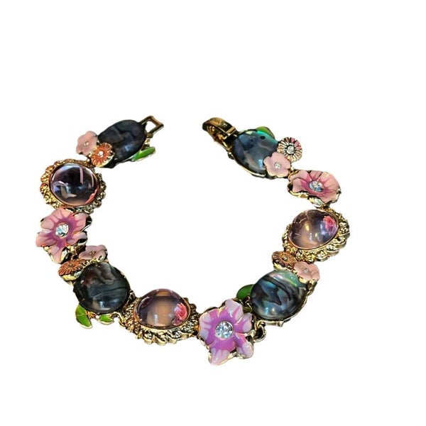 Bonbonfarbenes Blumenarmband, Vintage Schmuck