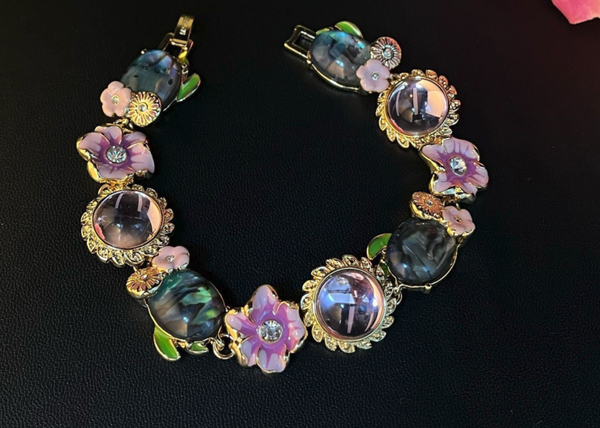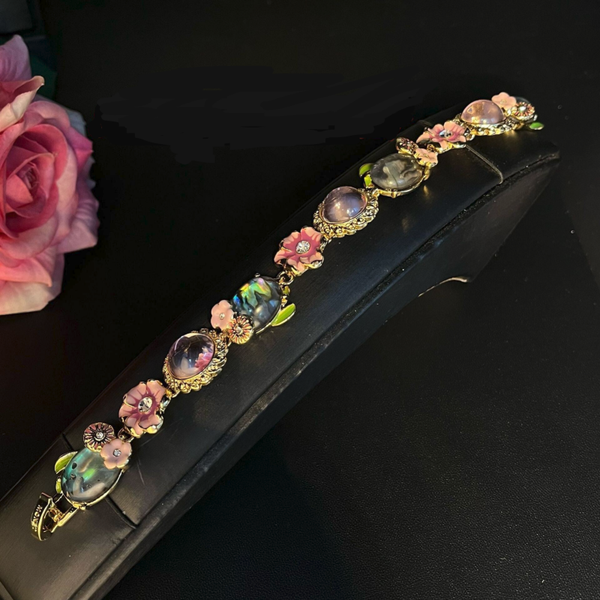 Mittelalterlicher Vintage Schmuck, hochwertiges, feenartiges, bonbonfarbenes Blumenarmband, süßes vintage-Armband im Sommer