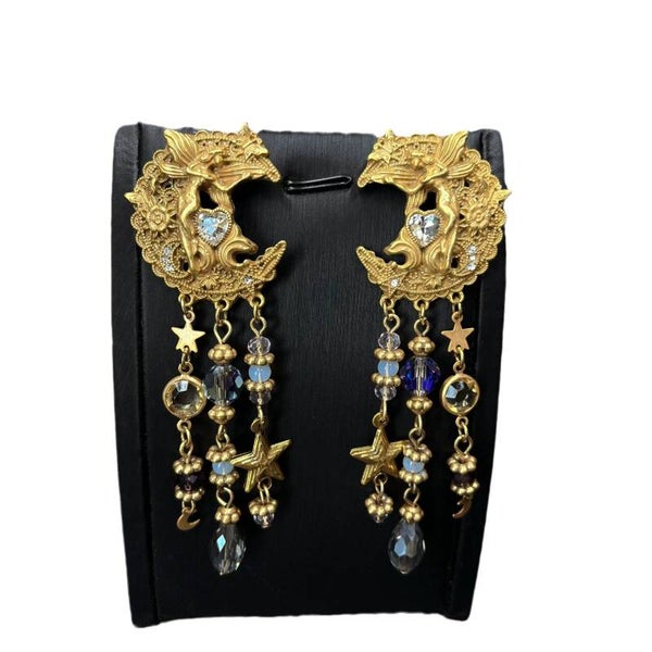 Mittelalterliche, hochwertige, exquisite, goldene Mond, Engel, Quaste Ohrringe, handgefertigte Emaille Ohrringe, Ramadan (رمضان )