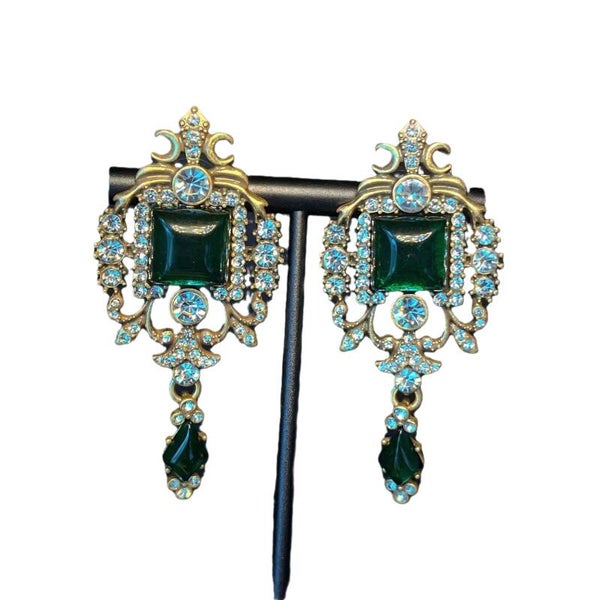 Mittelalterlicher Schmuck, hochwertiger Palaststil, Retro Ohrringe aus grünem und rotem Glas, Temperament, Vintage Ohrringe