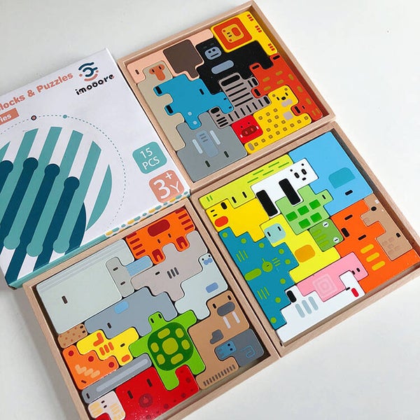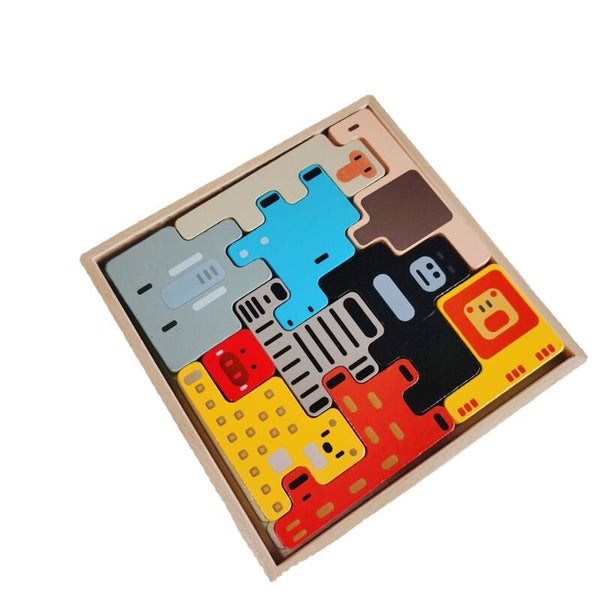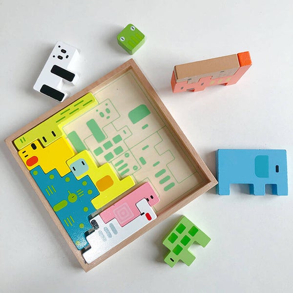Tiere, Quadrate, Bausteine, pädagogisches Holzspielzeug zur Intelligenzförderung, Russische Bausteine