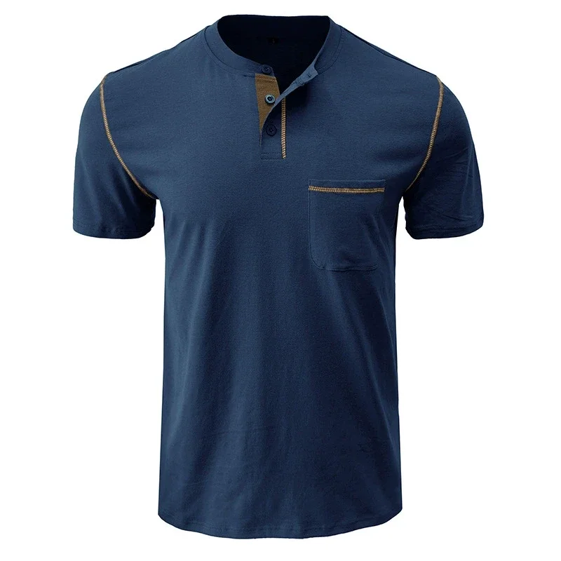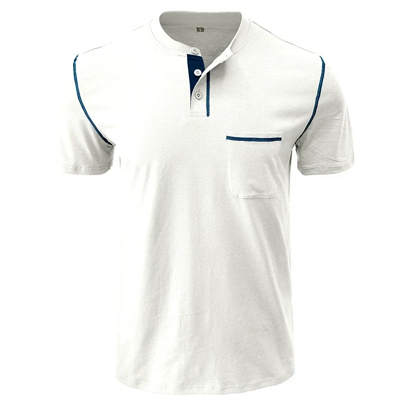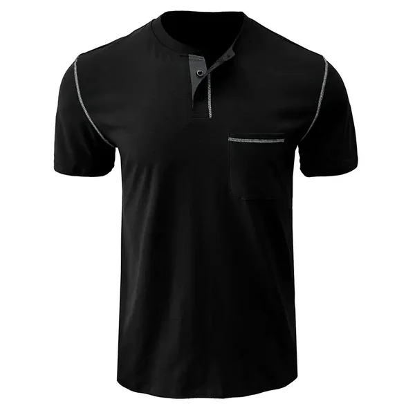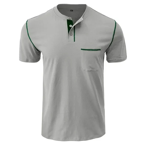 Herren Henley-Shirt, im sommerlichen europäisch-amerikanischen Stil, Kurzarm-T-Shirt, Oberteil, mit Brusttasche