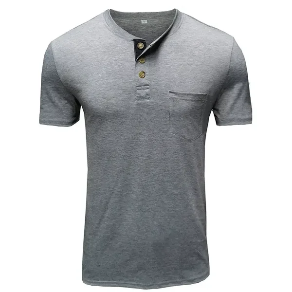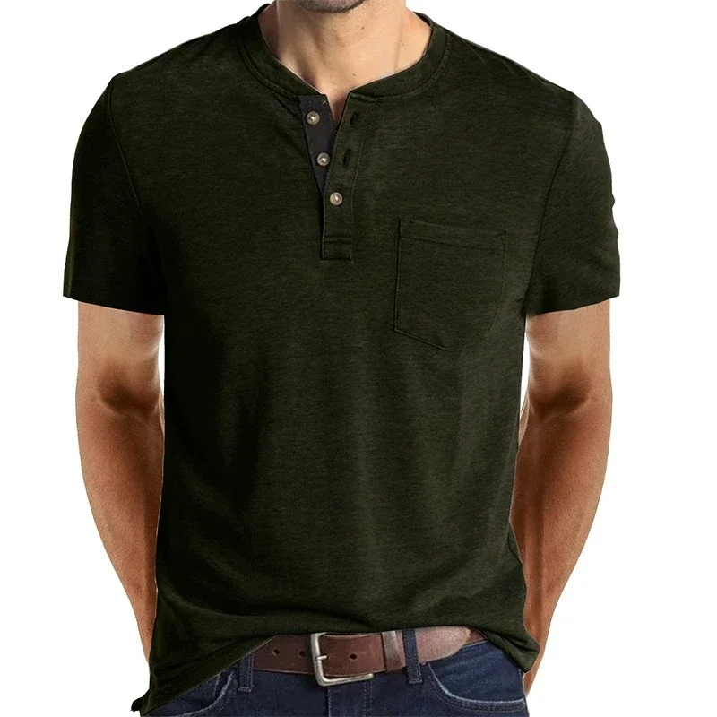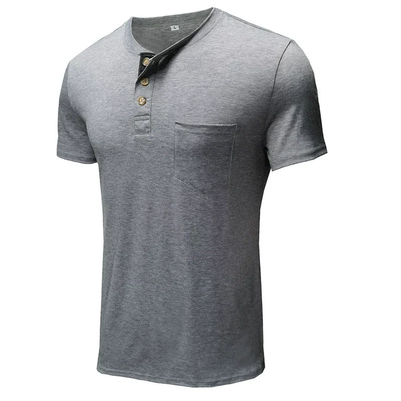Herren Kurzarm Henley-Shirt, Sommer, europäisch-amerikanischer moderner Stadtstil, T-Shirt mit Brusttasche, washed Style