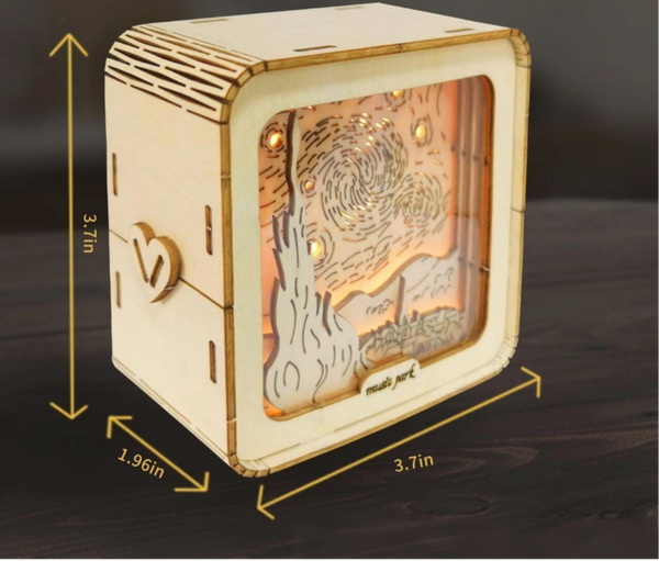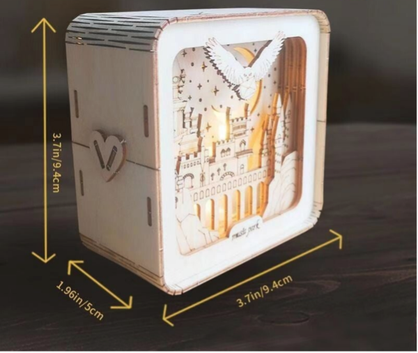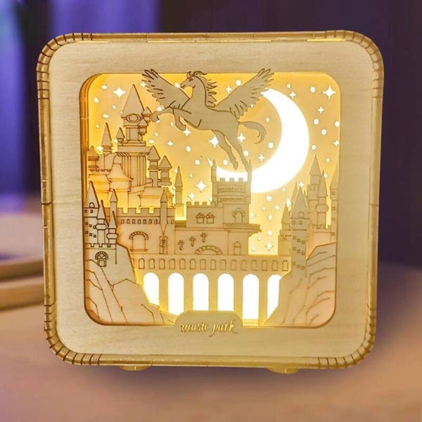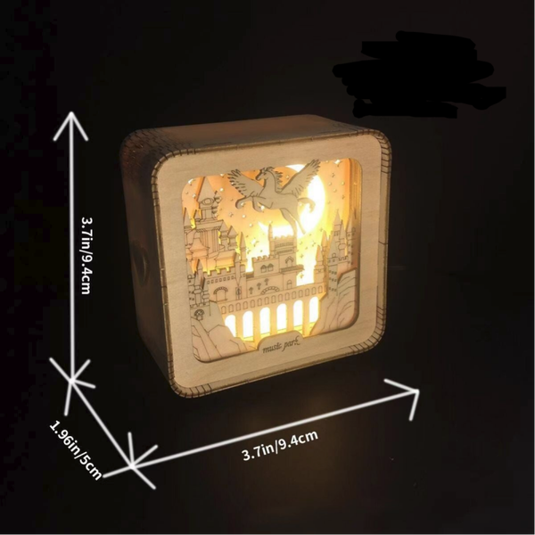 Entdecken Sie die zauberhafte "Sonne in der Kiste" – eine kunstvoll handgeschnitzte Lampe, die nicht nur als Tischdekoration dient, sondern auch eine warme, einladende Atmosphäre in Ihr Zuhause bringt. Hergestellt aus hochwertigem Holz, besticht diese stilvolle Schnitzerei durch ihre detailreiche Ausführung und die liebevollen Designs, die von Burgen über Katzen bis hin zu einem funkelnden Sternenhimmel reichen. Mit kompakten Maßen von 9,4 x 9,4 x 5 cm passt sie perfekt auf jeden Tisch oder Nachttisch und verwandelt jeden Raum in einen Ort der Gemütlichkeit. Wählen Sie aus verschiedenen Nachtlicht-Varianten, wie dem romantischen Love-Nachtlicht, Hoghwarts Harry Potter Schloss oder dem festlichen Weihnachts-Nachtlicht, und lassen Sie sich von der warmen Ausstrahlung dieser einzigartigen Lampe verzaubern. Ideal als Geschenk oder um sich selbst eine Freude zu machen – bringen Sie Licht und Stil in Ihr Zuhause!