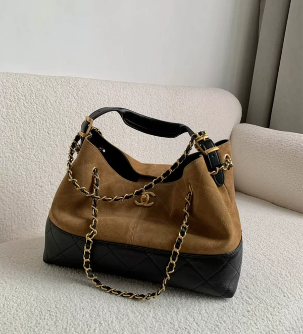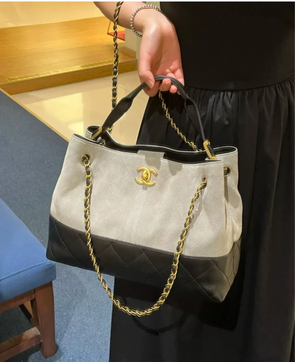 Chanel-inspired, 25A Wildleder, Colorblock Tote Bag für Damen, Großvolumige Kettentasche, Hobo Achseltasche, Umhängetasche