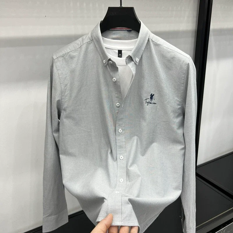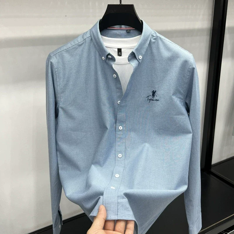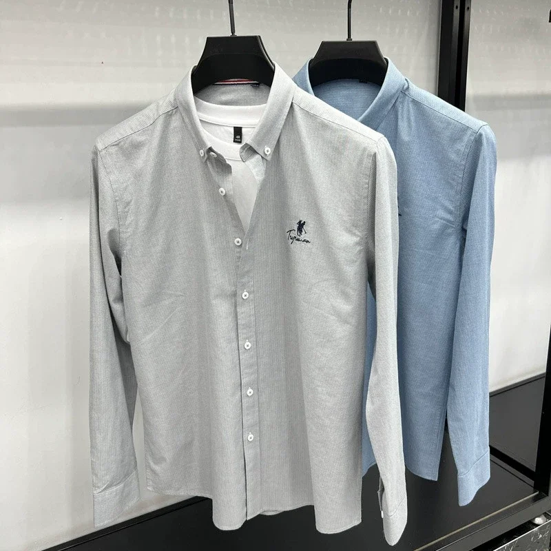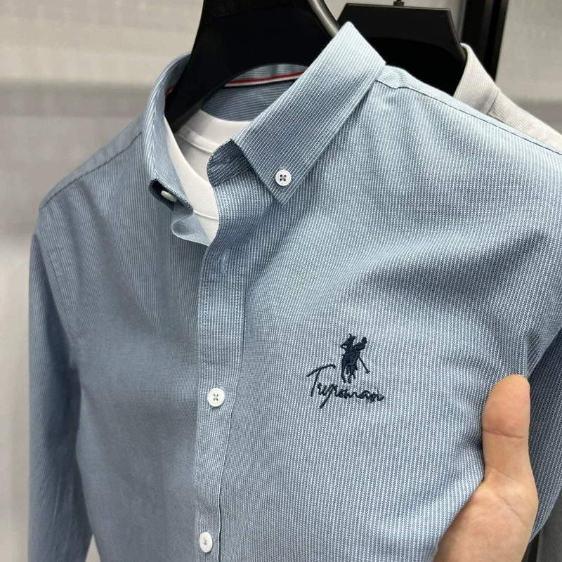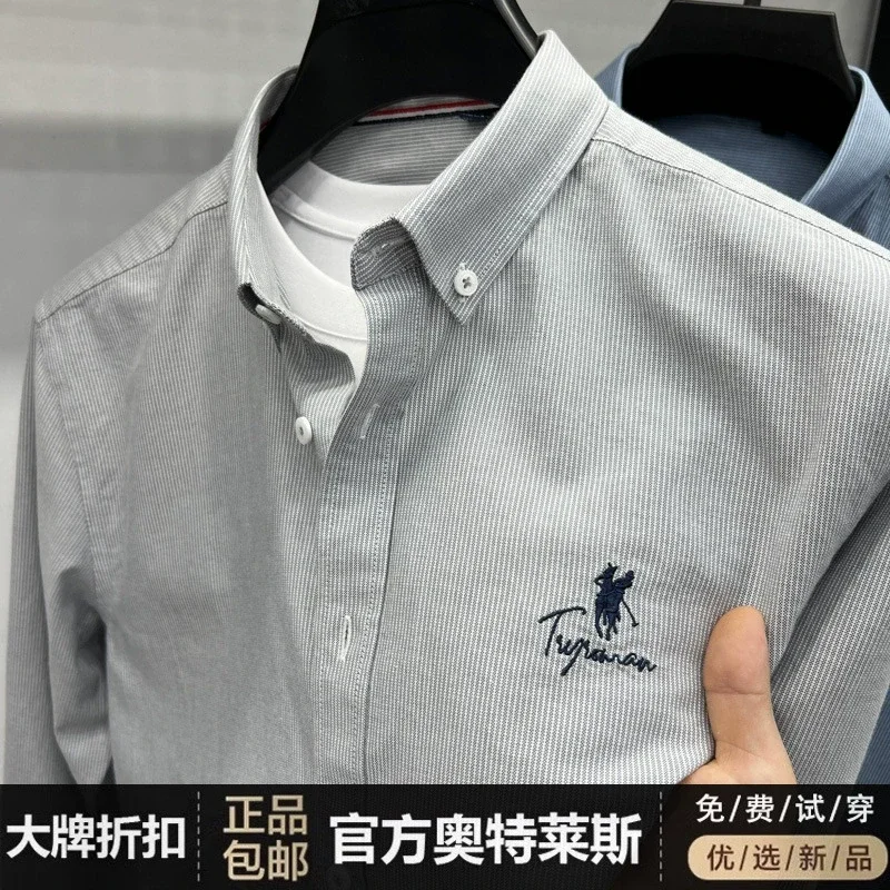 【Outlets-Markenrabatt】 Paul Herren-Langarmhemd 100% Baumwolle Frühlings-/Herbstmodell Gesticktes Polo-Pferdelogo