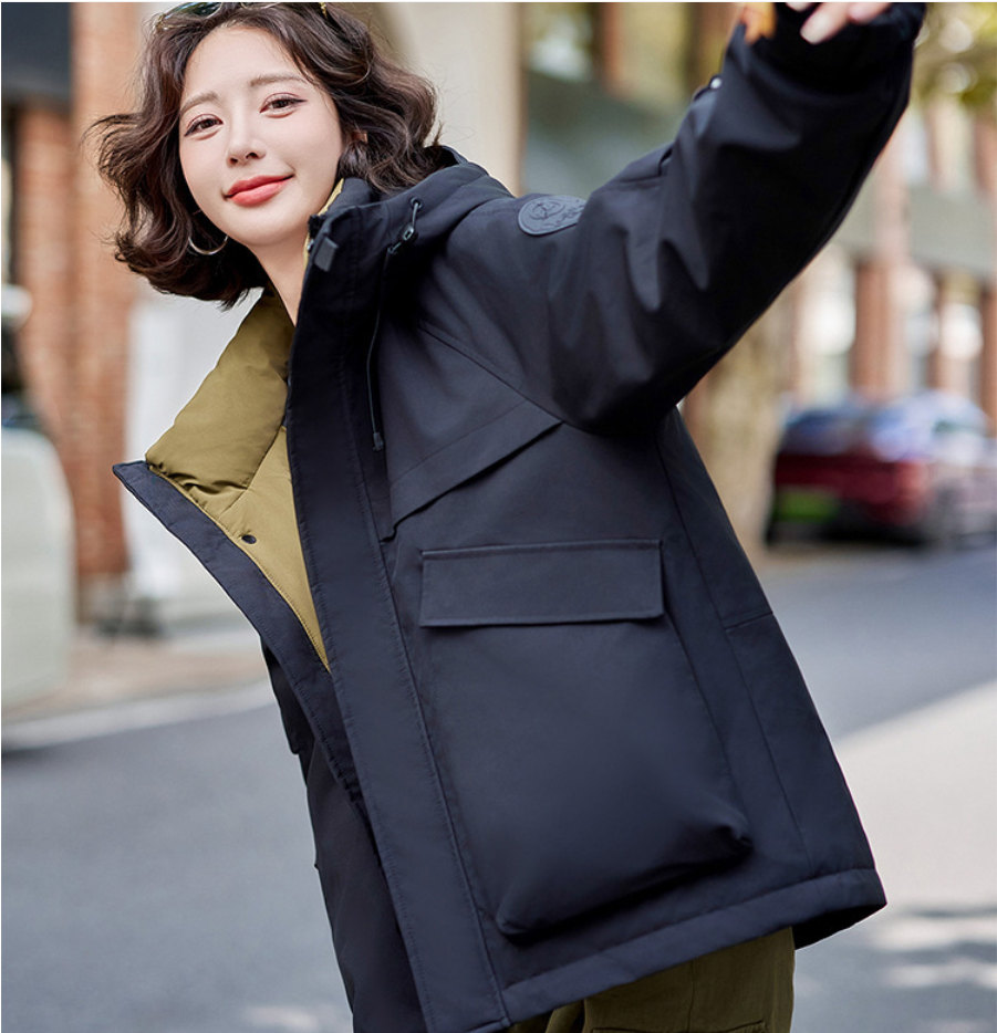 Echte Marken-Daunenjacke mit Kapuze – Kurzer, warmer Parka für Outdoor & Paare