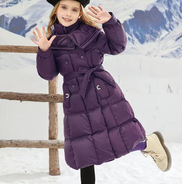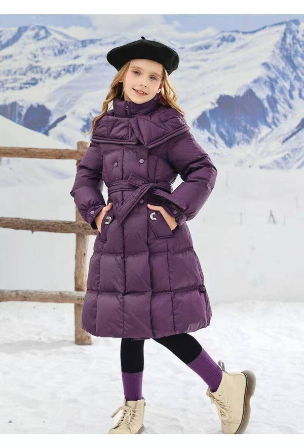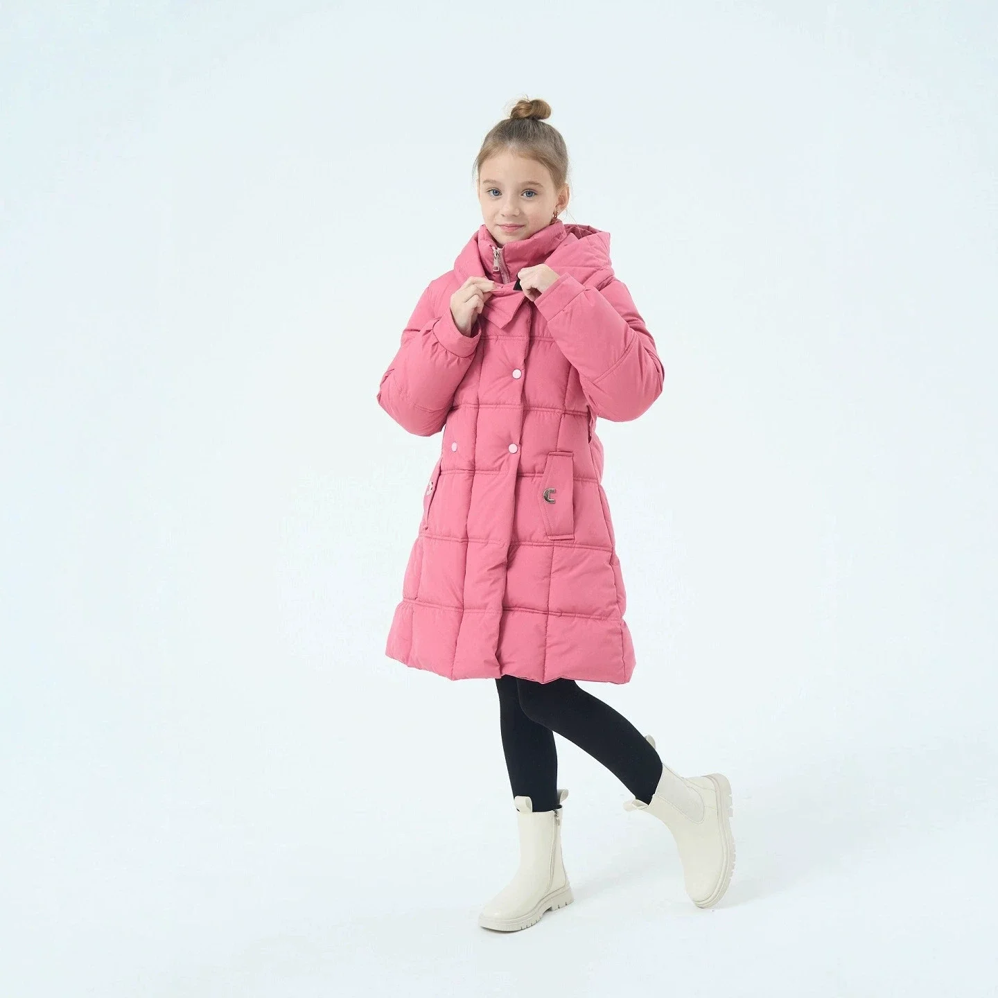 Lang geschnittene Winterjacke für Mädchen, 2025 Neuheit – Gefütterter, stylischer Daunenmantel, Trendiger Stil