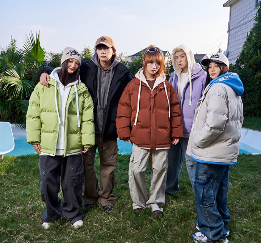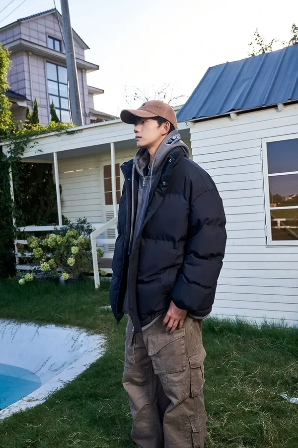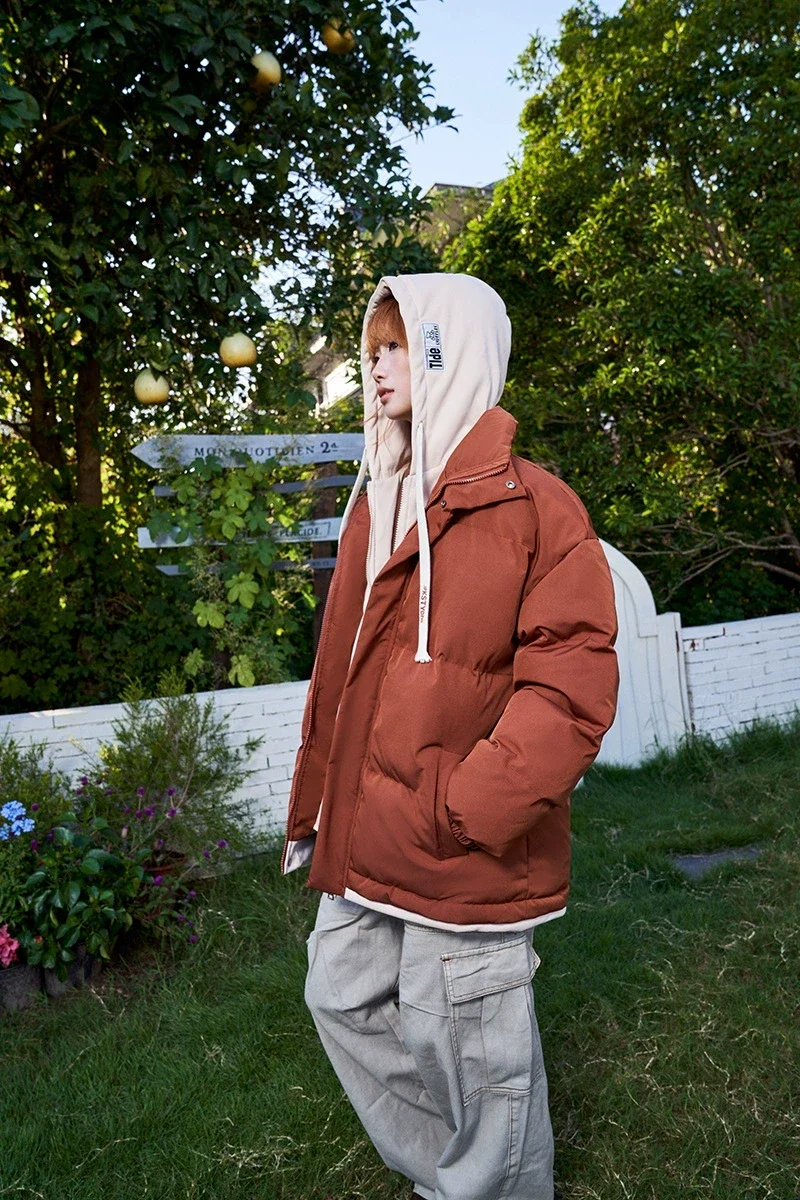 Unisex Kapuzen-Parka im Japanese-Style – Zweifarbig, weit geschnitten als Fake-Two-Piece