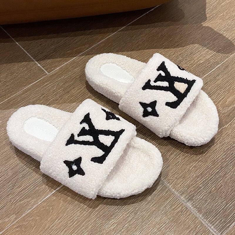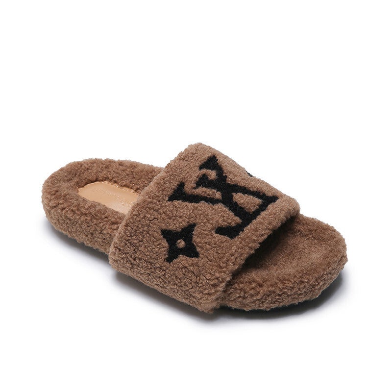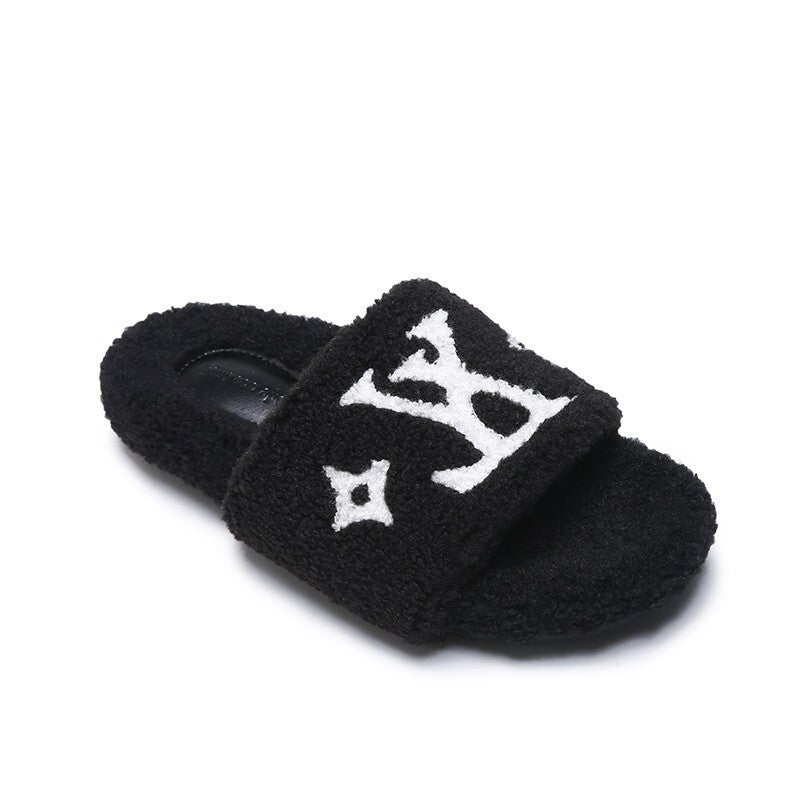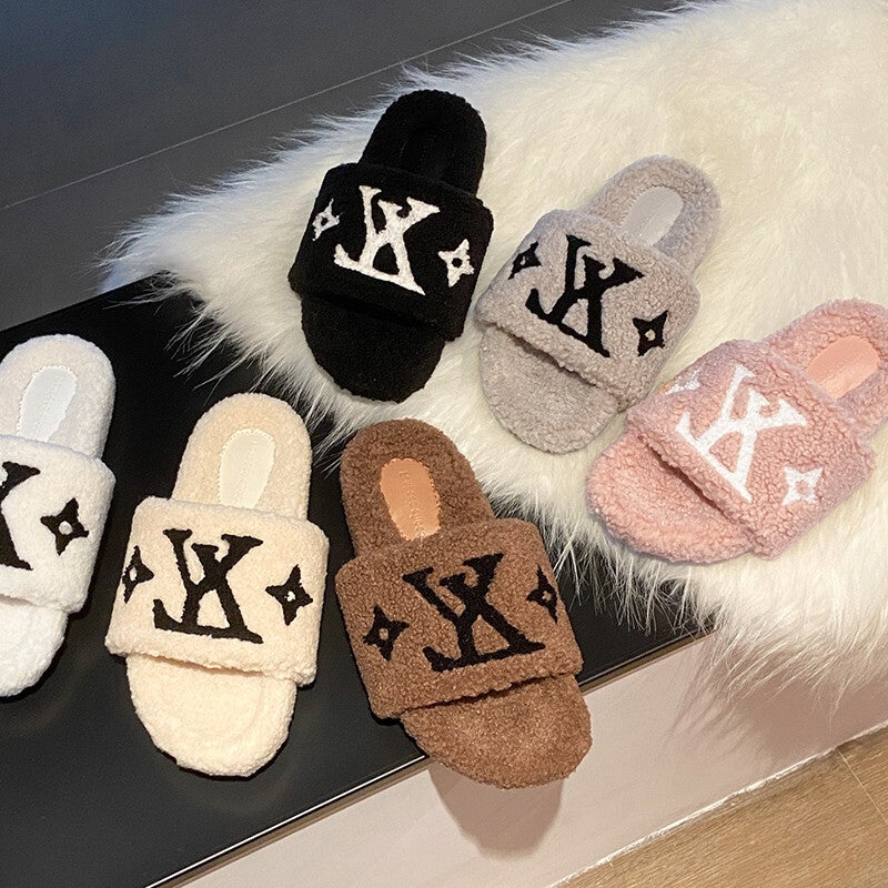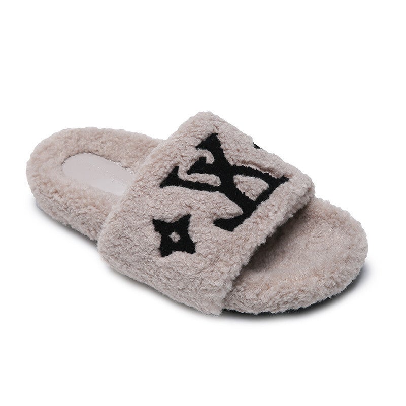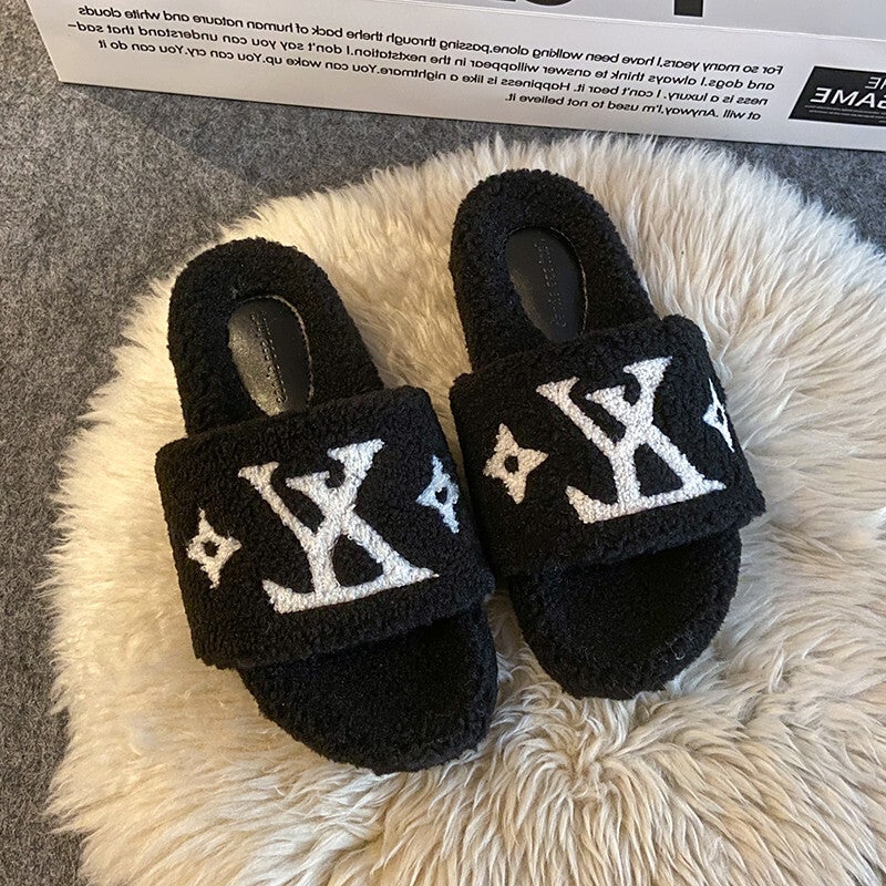 2025er Neuheit – Lammfell-Hausschuhe für Damen im Influencer-Stil, mit Frottier-Stickerei und Buchstaben-Design, wärmende Flachsohlen, auch für draußen geeignet.