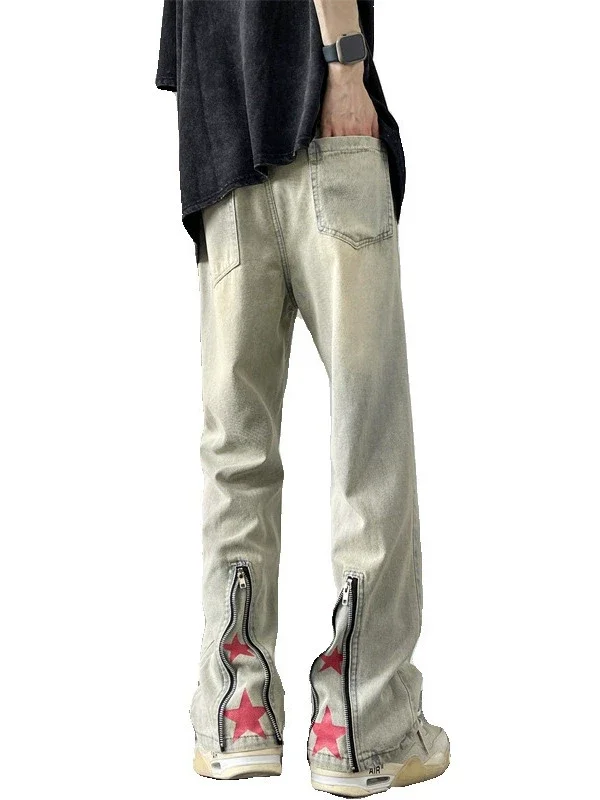 Entdecken Sie die Herren Vintage Jeans im amerikanischen Vibe-Stil, die mit ihrem einzigartigen Design und dem auffälligen Reißverschluss als Schlag ein echtes Statement setzen. Diese weite Geradeschritt-Hose kombiniert eine leichte Schlaghose (Bootcut) mit einer modernen, mittleren Taille, die sowohl Komfort als auch Stil bietet. Die Waschveredelung im Stonewash-Look verleiht den Jeans eine authentische Vintage-Optik, die perfekt für lässige Anlässe oder entspannte Wochenendausflüge geeignet ist. Hergestellt aus hochwertigem, leicht dehnbarem Denim, sorgt diese Hose für eine optimale Passform und Bewegungsfreiheit. Erhältlich in den trendigen Farben Gelb-Braun und Schwarz, passt sie sich mühelos Ihrem individuellen Stil an. Wählen Sie aus den Größen S bis 3XL und bringen Sie frischen Wind in Ihre Garderobe mit diesen vielseitigen Vintage Jeans!