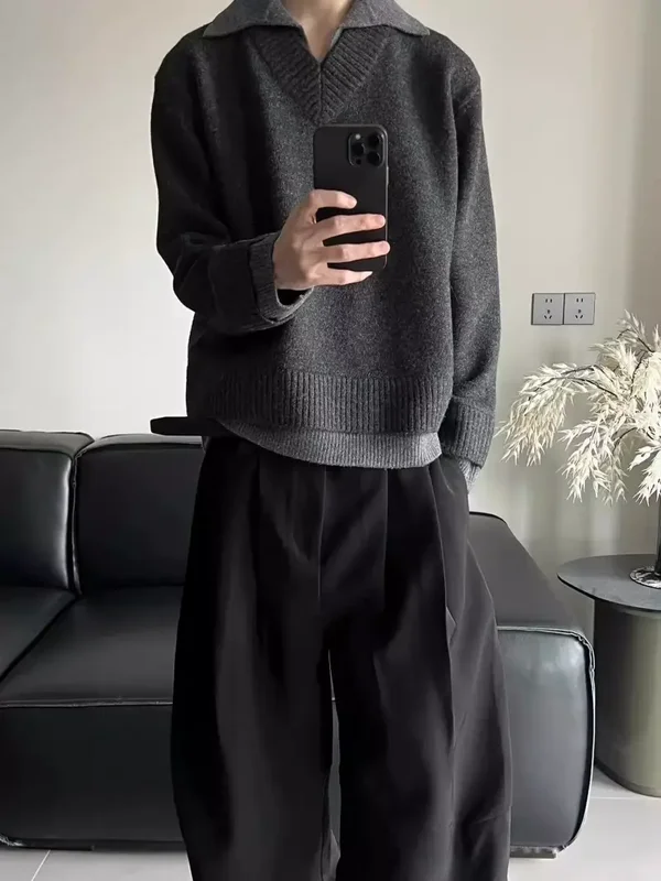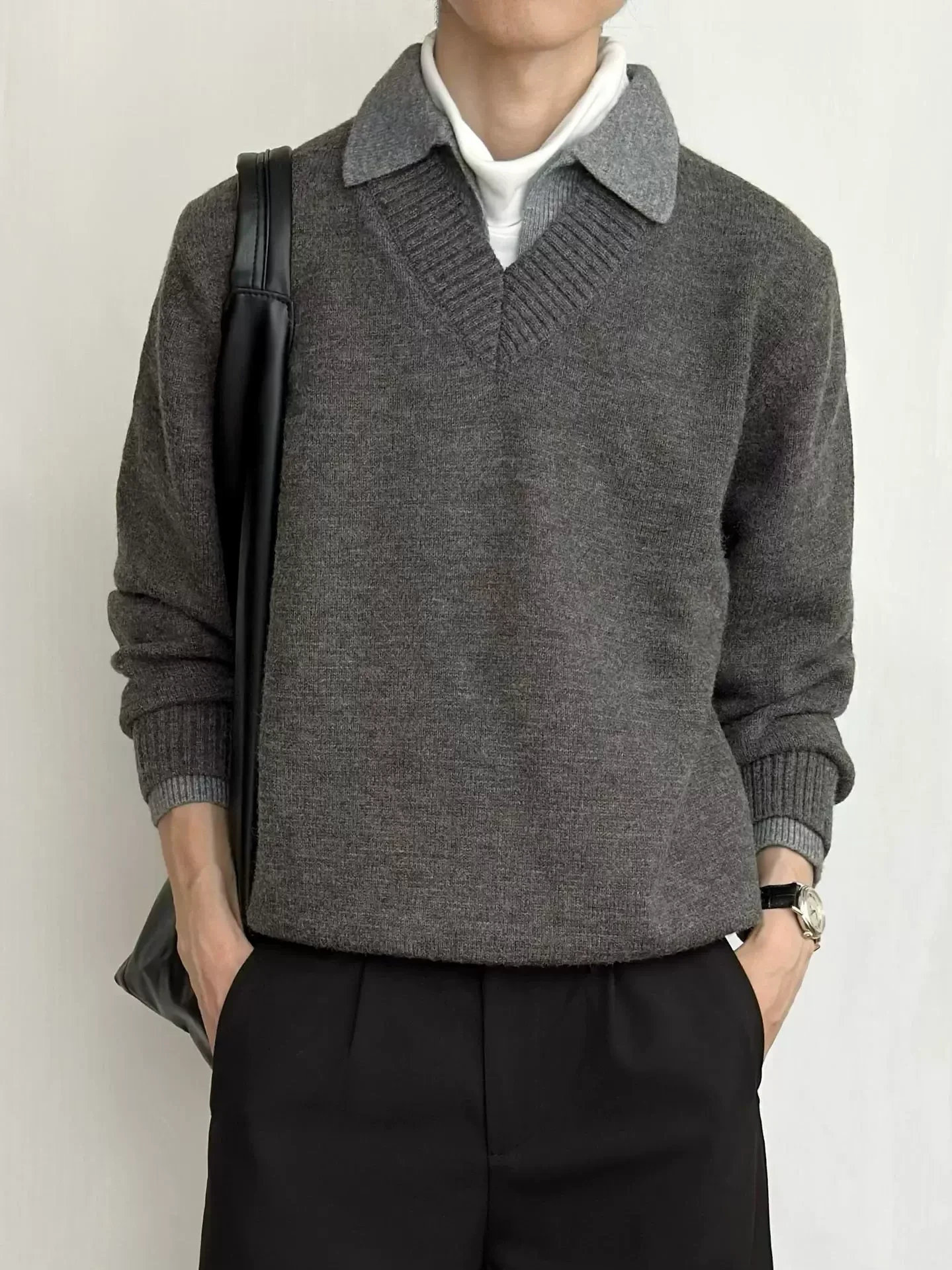 Herren-Pullover mit V-Ausschnitt und Fake-Two-Layer-Design, hochwertiges Winter-Outfit, lässiger Strickwaren-Underlayer