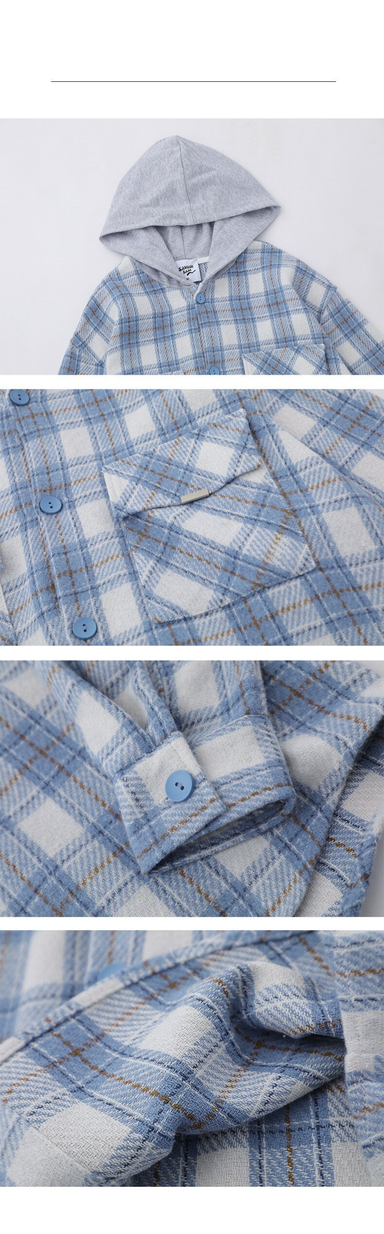 Wilder-Base Retro Flanell-Hemd – Flanellhemd mit Kontrastfarben und Fake-Two-Layer-Design mit Kapuze